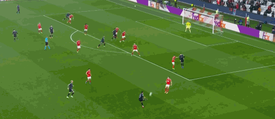 第26分钟,居莱尔远射,皮球稍稍偏出