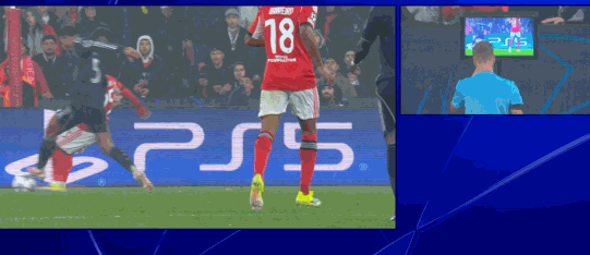 第18分钟,普雷斯蒂安尼禁区内倒地,主裁观看视频回放取消点球判罚