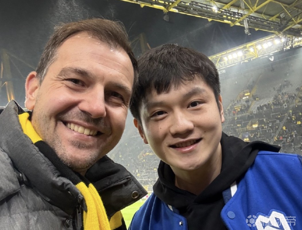 樊振东目前效力于德国的乒乓球俱乐部萨尔布吕肯,此番他依然是与好友波尔一同出现在多特主场,观看比赛。