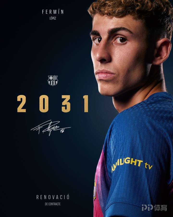 巴塞罗那足球俱乐部和一线队球员费尔明·洛佩兹达成协议,将他的原有合同延长两年,新合同至2031年6月30日。