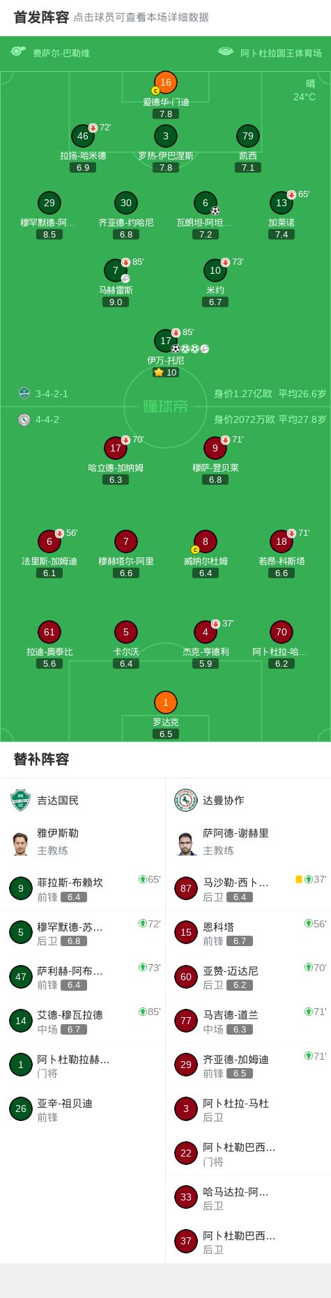 第64分钟,吉达国民球员伊万-托尼助攻瓦朗坦-阿坦加纳打入一球。