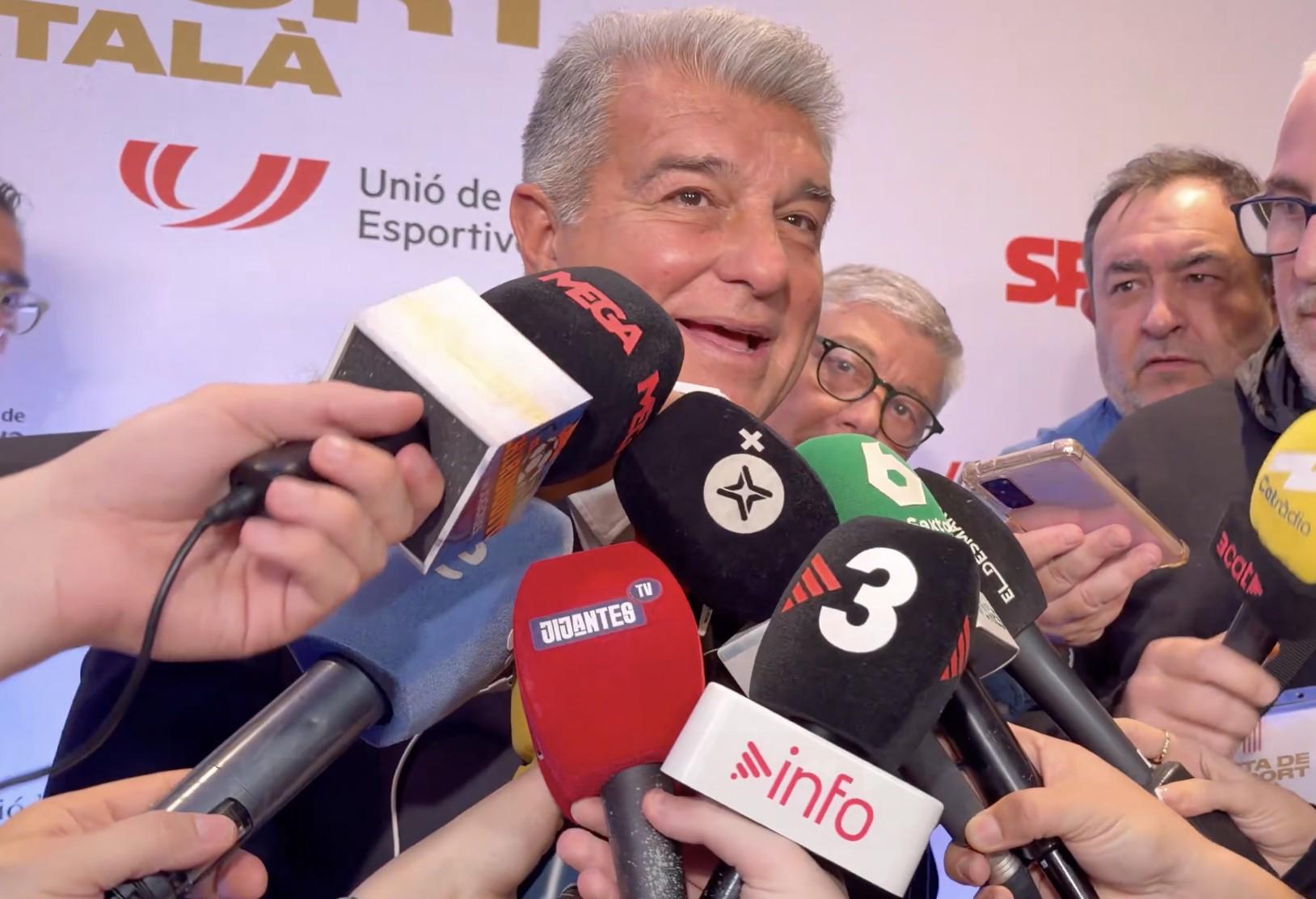 在出席加泰罗尼亚体育联合会举办的加泰罗尼亚体育盛典期间,拉波尔塔在接受采访时表示