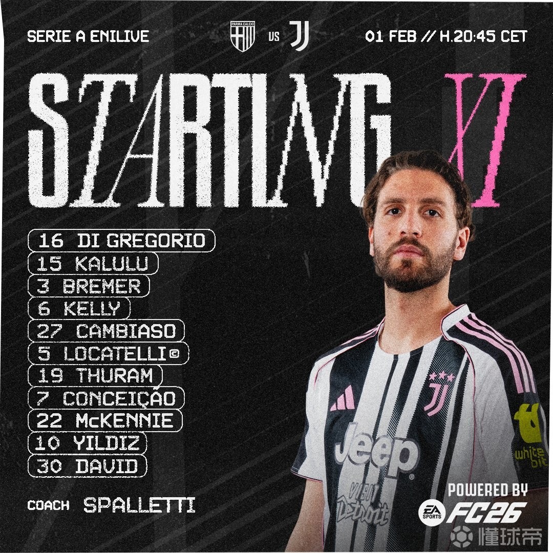 北京时间2月2日凌晨3点45分,意甲联赛第23轮展开一场焦点战役,尤文对阵帕尔马。赛前,双方公布首发阵容。