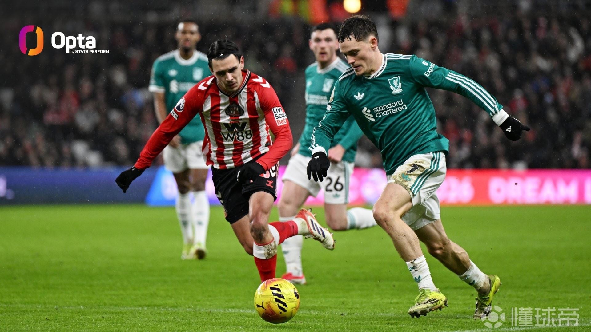 英超第26轮比赛,利物浦客场1-0战胜桑德兰,尽管维尔茨没有进球或助攻,但这名德国攻击中场在进攻三区的发挥相当出色。