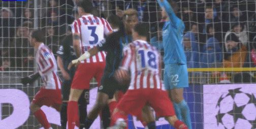 第45+3分钟,卢克曼角球进攻中破门,马竞2-0!