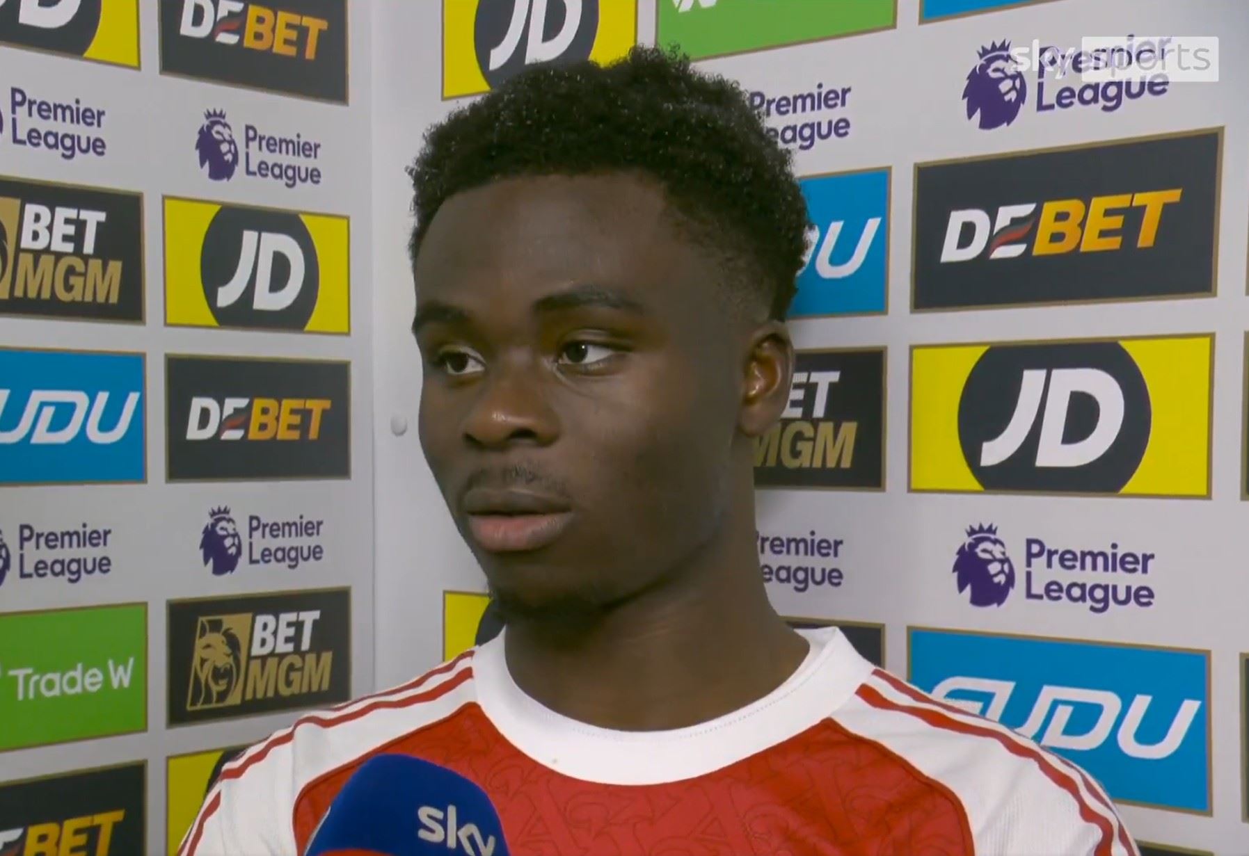 英超第31轮,阿森纳在客场2-2战平狼队。赛后,阿森纳前锋萨卡接受了天空体育的采访。