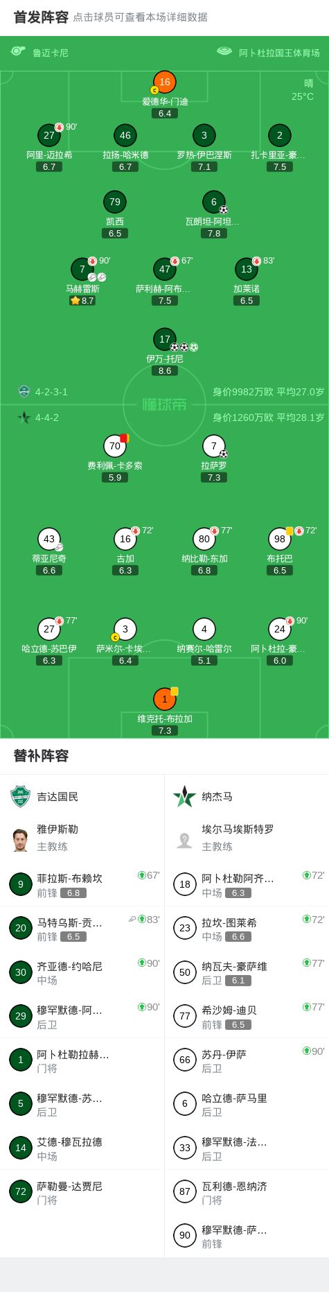 第69分钟,吉达国民球员马赫雷斯助攻伊万-托尼打入一球。