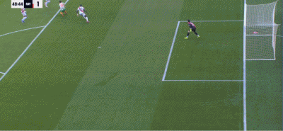 第90+4分钟,错失绝杀机会,安东尼射门被挡出