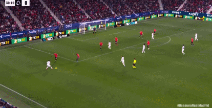 北京时间2月22日,西班牙足球甲级联赛第25轮,奥萨苏纳主场对阵皇家马德里。上半场,库尔图瓦送点,布季米尔点射。半场战罢,场上比分奥萨苏纳 1-0 皇马。