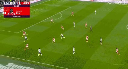 第61分钟,埃泽直塞给萨卡,禁区内萨卡面对维卡里奥捅射被挡出,埃泽得球补射得手,阿森纳3-1热刺。