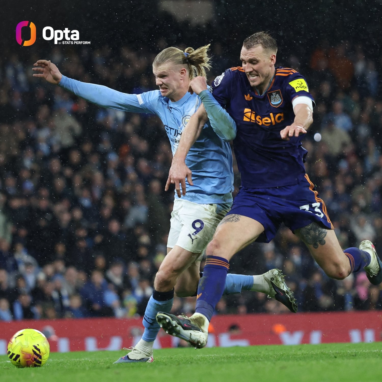 据统计,本场比赛哈兰德赢下12次对抗,这是他个人在五大联赛191场(德甲67场+英超124场)中的单场最高数据。