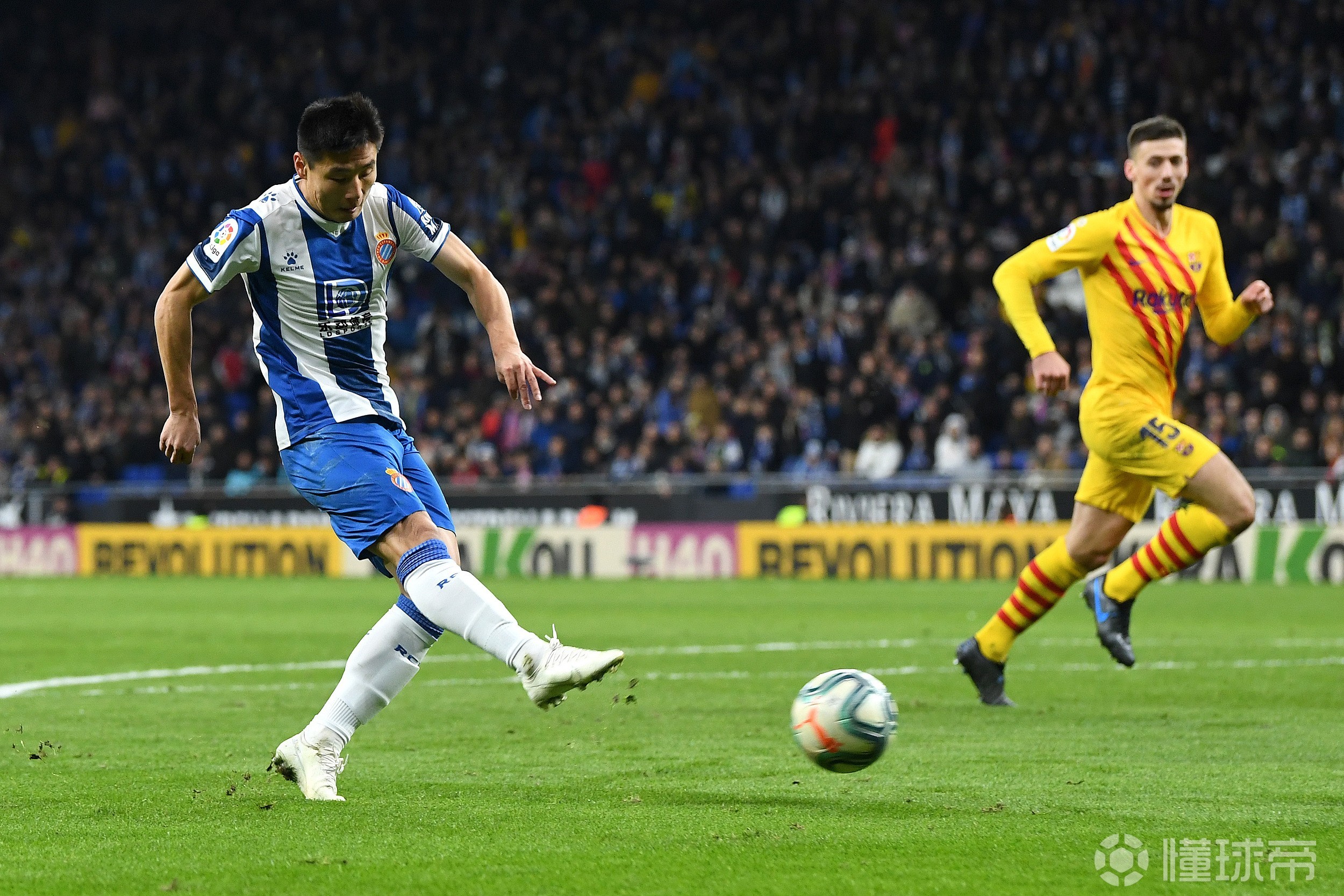 19/20赛季西甲第14轮,西班牙人主场迎战赫塔菲,比赛进行到第45分钟,西班牙人角球发出,武磊灵动跑位后点垫射破门,打入个人联赛赛季首球,武磊打满全场,帮助西班牙人拿下宝贵一分。
