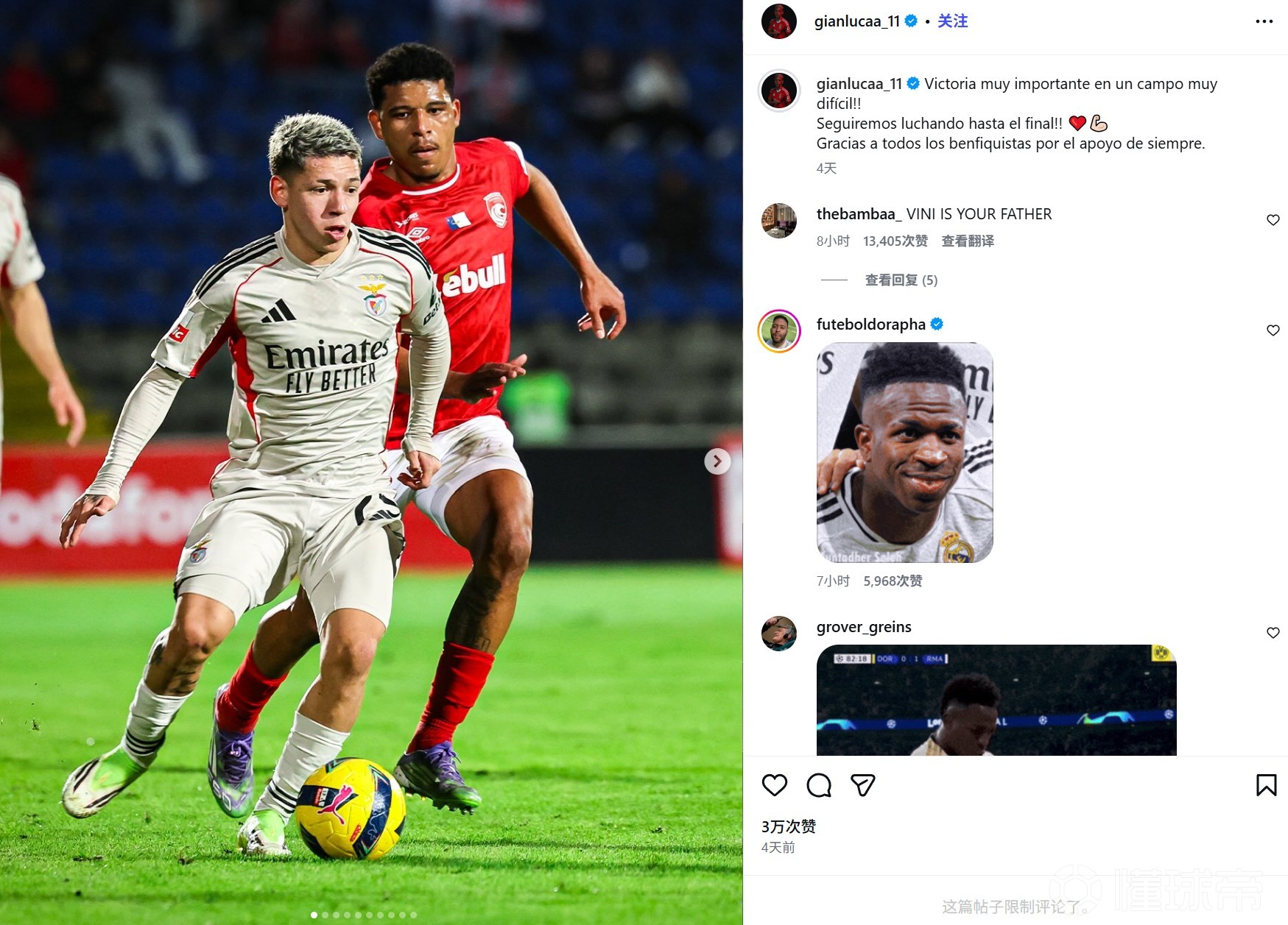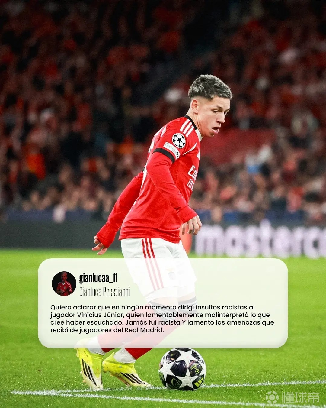 • 因种族歧视维尼修斯,本菲卡球员普雷斯蒂安尼社媒被冲