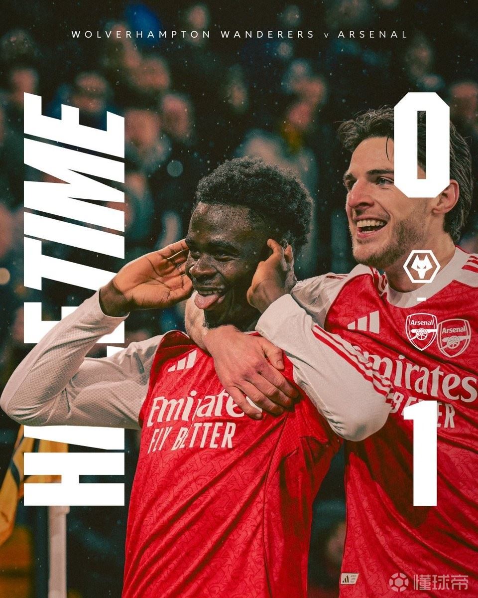 • 半场战报:阿森纳1-0狼队,萨卡破门,马杜埃凯屡造险