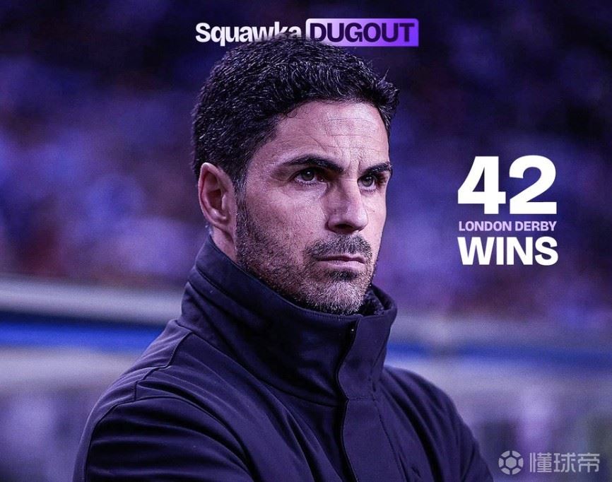 • 阿尔特塔英超伦敦德比取胜42场,追平穆里尼奥仅次于温格